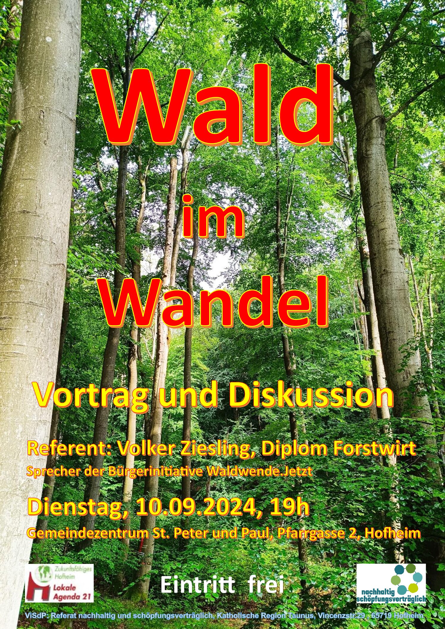 Die Hofheimer Lokale Agenda 21 und der BUND Ortsverband Hofheim laden herzlich zu einer spannenden Waldbegehung ein. Begleiten Sie den renommierten Experten Dipl.-Forstwirt Volker Ziesling durch das FFH-Gebiet Galgenberg im Hofheimer Stadtwald. Treffpunkt: Sa. 06.09.2025 um 11.00 Uhr am Waldparkplatz des Natur-parks Taunus vorm „Weberhäuschen“ an der Kreisstraße 787 zwischen Langenhain und Diedenbergen (gegenüber der Nord-West-Ecke des Sportpark Heide, Hofheim). Dauer ca. 2 Stunden. [Weitere Details im Beitrag]